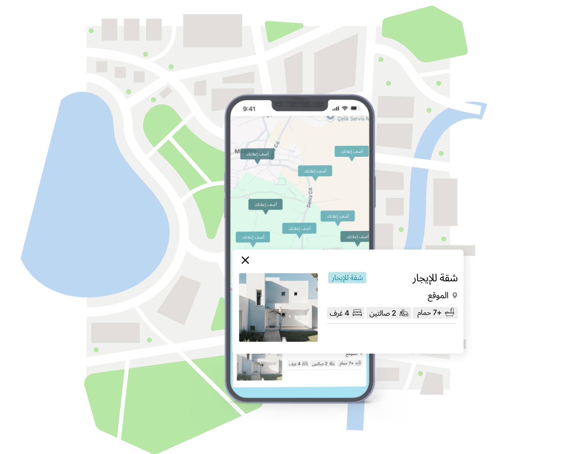 خريطة الطلبات والعروض: اعثر على العقارات أو الطلبات في منطقتك بسهولة.